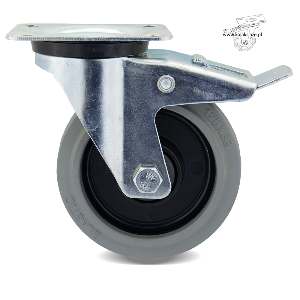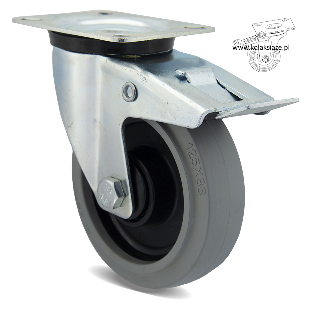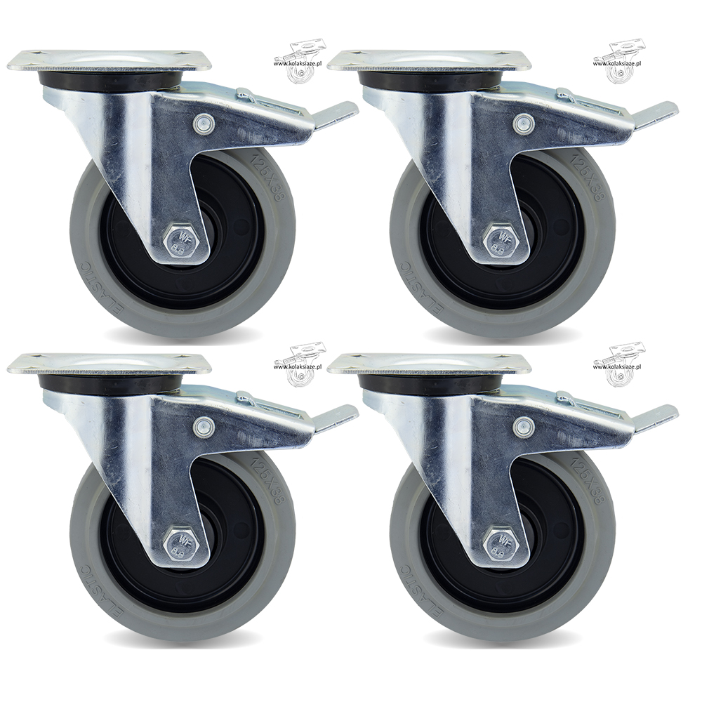 Zestaw składa się z czterech kółek wyposażonych w mocowanie na płytkę. W skład zestawu wchodzą cztery koła o kodzie 2HPOGUS125K1 (poz.8 w tabeli). Koło posiada piastę poliamidową oraz oponę gumową, posiada łożysko kulkowe. Obudowa pokryta jest ocynkiem. W kole łożysko kulkowe, waga zestawu 4,532 kg.